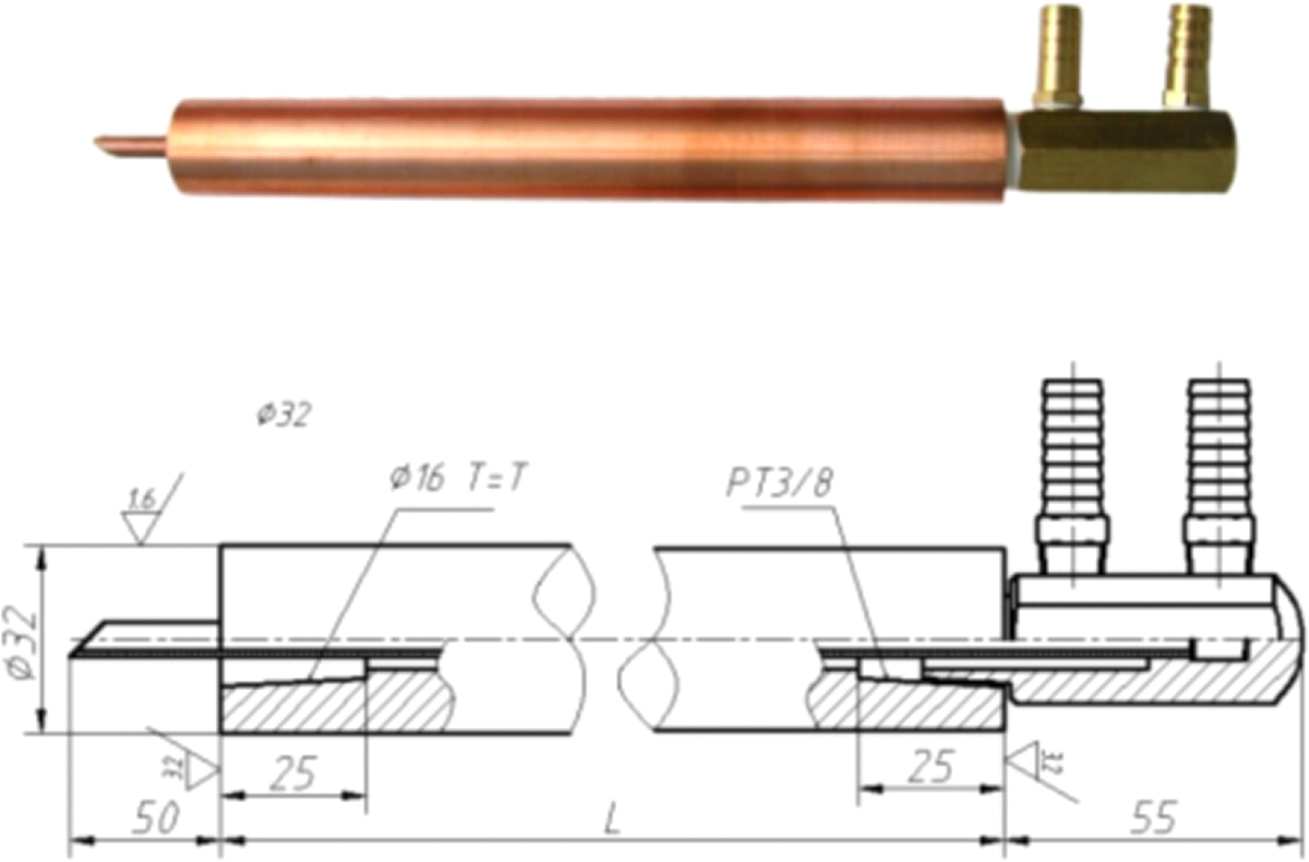 Ang makina ng hinang ay gumagamit ng isang baras na may hawak na elektrod na naghahain ng dalawahang layunin: pag -secure ng elektrod sa lugar at pagpapadali sa paglipat ng kasalukuyang, presyon, pati na rin ang paglamig ng tubig sa elektrod. Sa panahon ng mga operasyon ng welding ng lugar, ang integrated channel ng paglamig ng tubig sa loob ng mahigpit na pagkakahawak ay epektibong nagpapalamig sa parehong elektrod at ulo nito. Ang baras ay maaaring likhain mula sa mga materyales tulad ng chromium zirconium tanso o pulang tanso, tinitiyak ang pinakamainam na pagganap.
